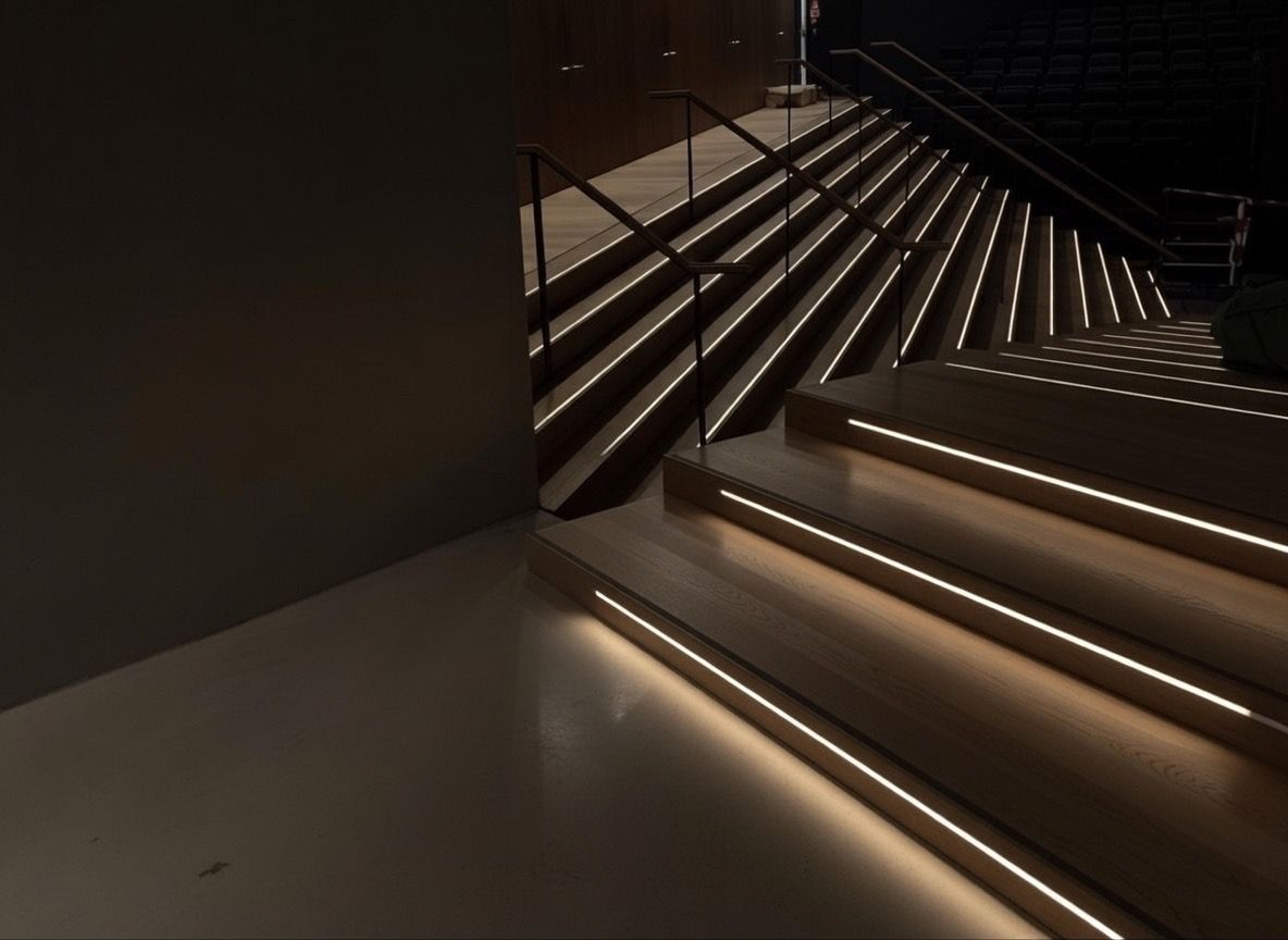 Lineare Einbauleuchten für Stufen, Podeste und Bühnenkanten.