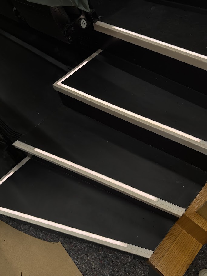 – Stufenbeleuchtung im oberen Rang bündig in die Stufe eingelassen