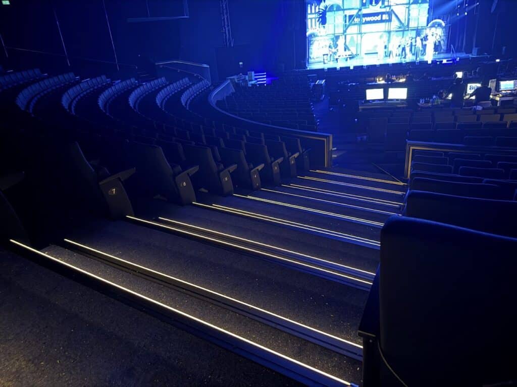 - Deutliche Erkennbarkeit der Stufenkanten bei unterschiedlichen Lichtverhältnissen und sichere Besucherführung während Vorstellung, Einlass und Räumung